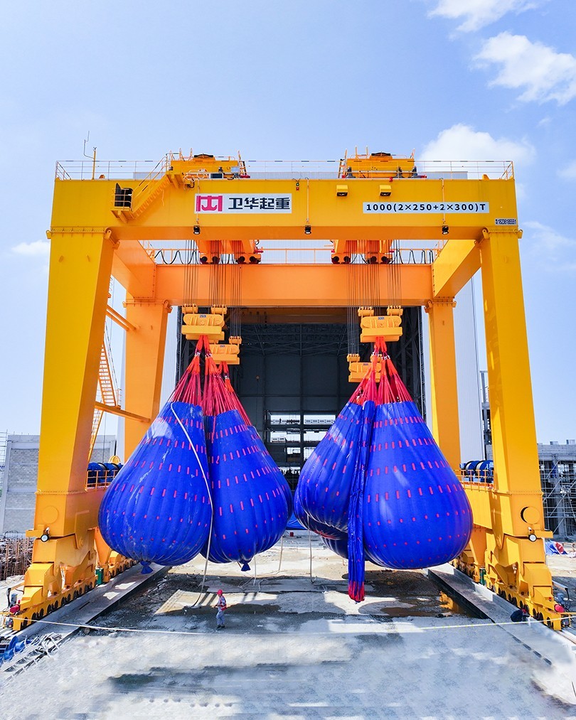 近日,在福建省福清市江阴港国家级海上风电研究与试验检测基地,河南世界杯下单平台网站官网1000t双主梁门式起重机顺利完成重载实验并投入运营。