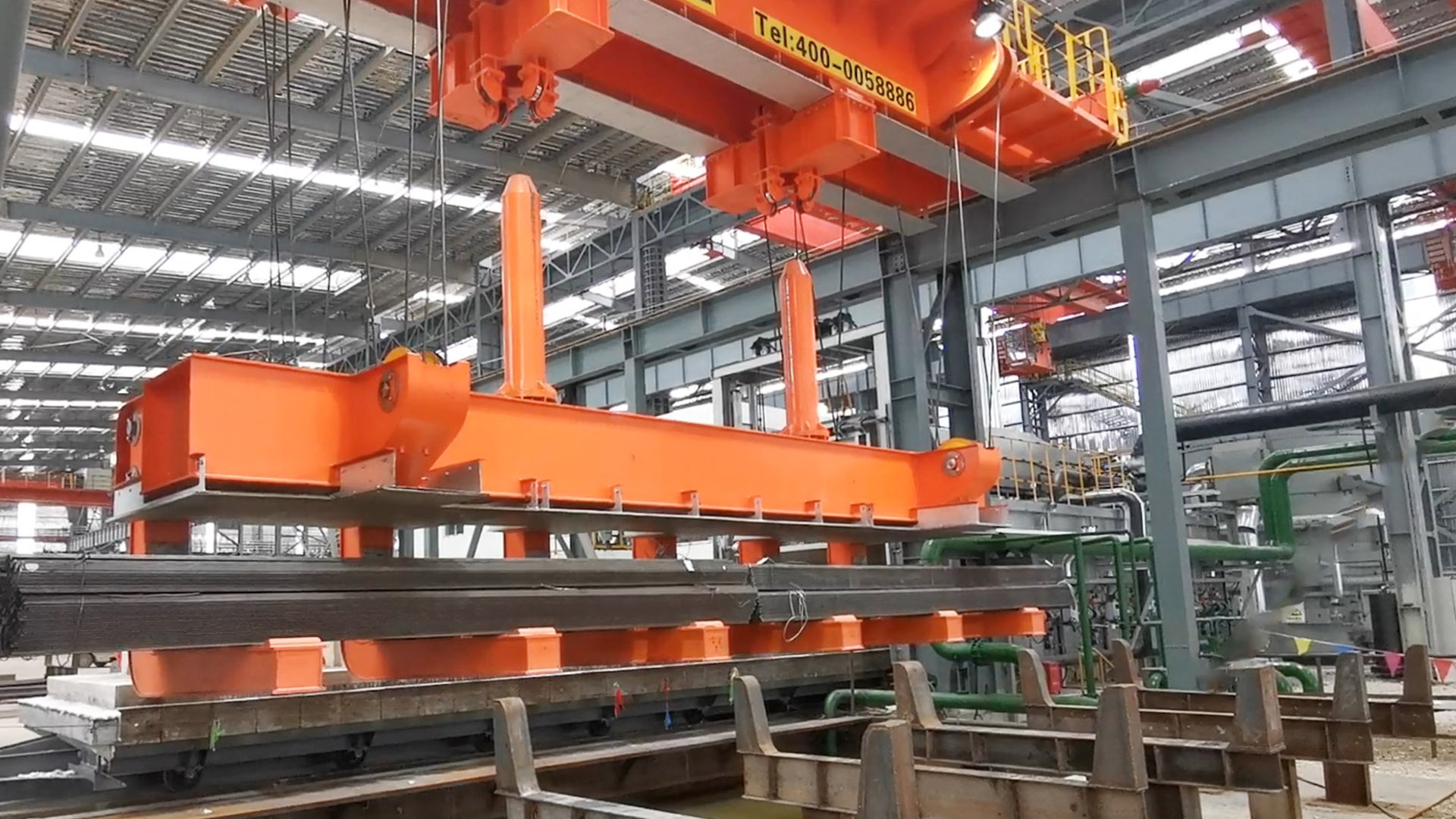 世界杯下单平台网站官网智能淬火起重机主要用于高温型材或棒材的吊装并进行淬火工艺。